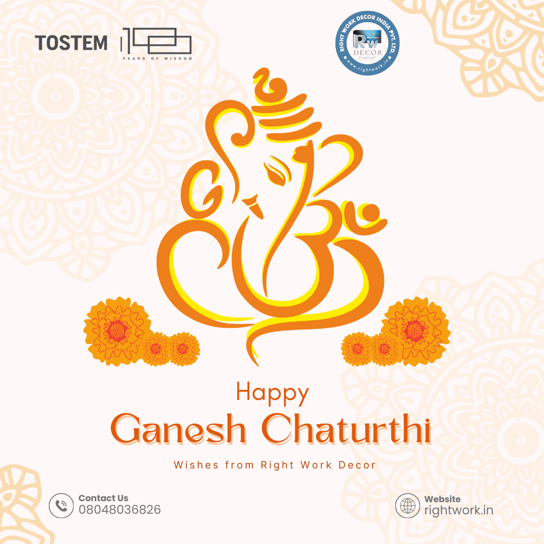 Ganesh Chaturthi Wishes from Right Work Decor As Lord Shiva vowed to bring Lord Ganesha back to life, his disciples returned with the head of an elephant, symbolizing strength, wisdom, and new beginnings. This Ganesh Chaturthi, let us draw inspiration from this divine tale, embracing resilience and creativity in all that we do. At Right Work Decor, we strive to bring new life to your spaces, much like how Ganesha was revived with a fresh beginning. May Lord Ganesha bless your home with beauty, harmony, and success. Ganpati Bappa Morya!